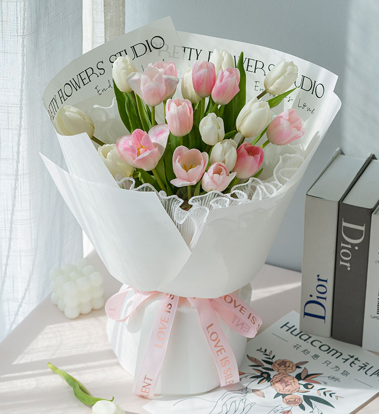 郁金香白色9枝,浅粉色郁金香10枝